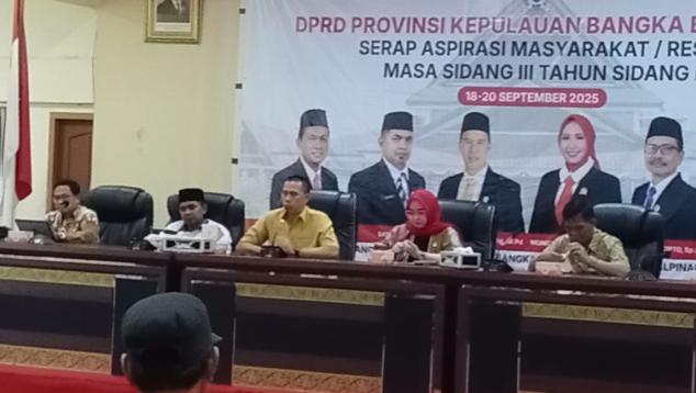 PANGKALPINANG – DPRD Provinsi Kepulauan Bangka Belitung menggelar kegiatan reses masa sidang III tahun sidang I pada Kamis (18/9/2025). Kegiatan yang berlangsung mulai pukul 09.00 WIB ini dipusatkan di Ruang Betason, Kantor Wali Kota Pangkalpinang, dengan agenda utama menyerap aspirasi masyarakat.