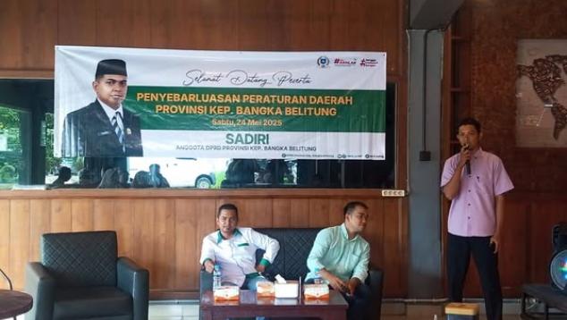 PANGKALANBARU – Anggota DPRD Provinsi Kepulauan Bangka Belitung, Sadiri menggelar kegiatan penyebarluasan Peraturan Daerah (Perda) tentang Fasilitasi Penyelenggaraan Pesantren pada Sabtu pagi, bertempat di Cafe Z1, Pangkalan Baru, Kabupaten Bangka Tengah, pada Sabtu (24/5/2025).